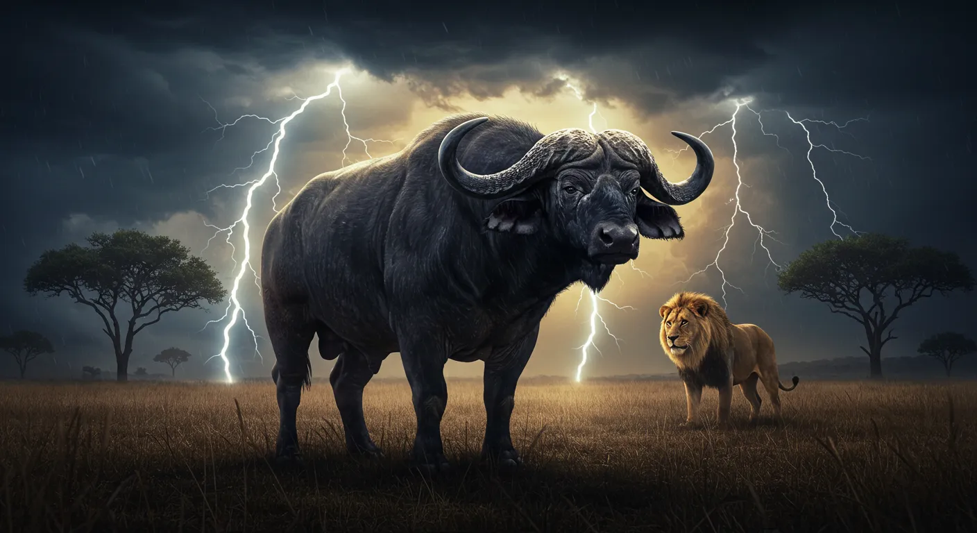 Pense nisso: enquanto os leões caçam em torno de 15 km por noite atrás das presas ideais, os búfalos mantêm a segurança coletiva com sua força imponente e organização social exemplar.